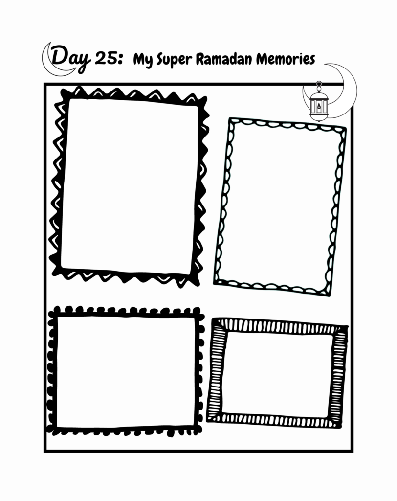 My Super Ramadan is a Journal and Activity Book for preschool and early elementary-aged children. This workbook contains a daily checklist with journal prompts, word search, matching exercises, coloring pages, and other elementary-level activities that will keep your young Muslim engaged. The Ramadan-themed activities are simple yet fun to get them excited about each day of their Ramadan journey.